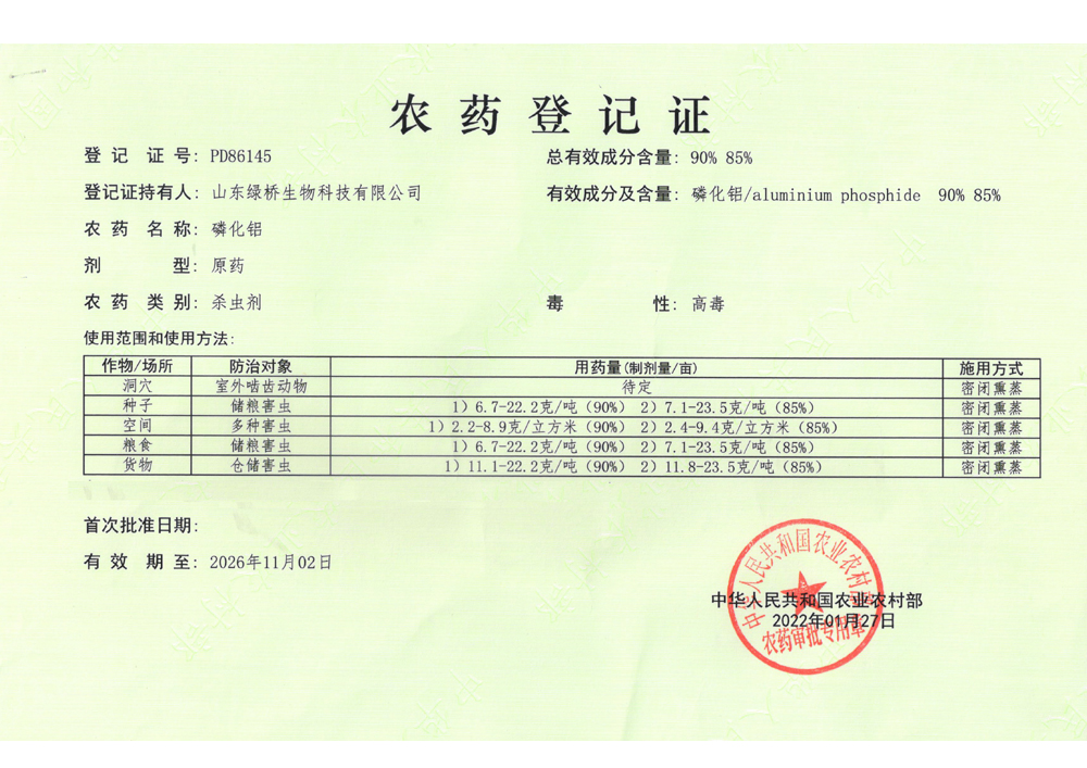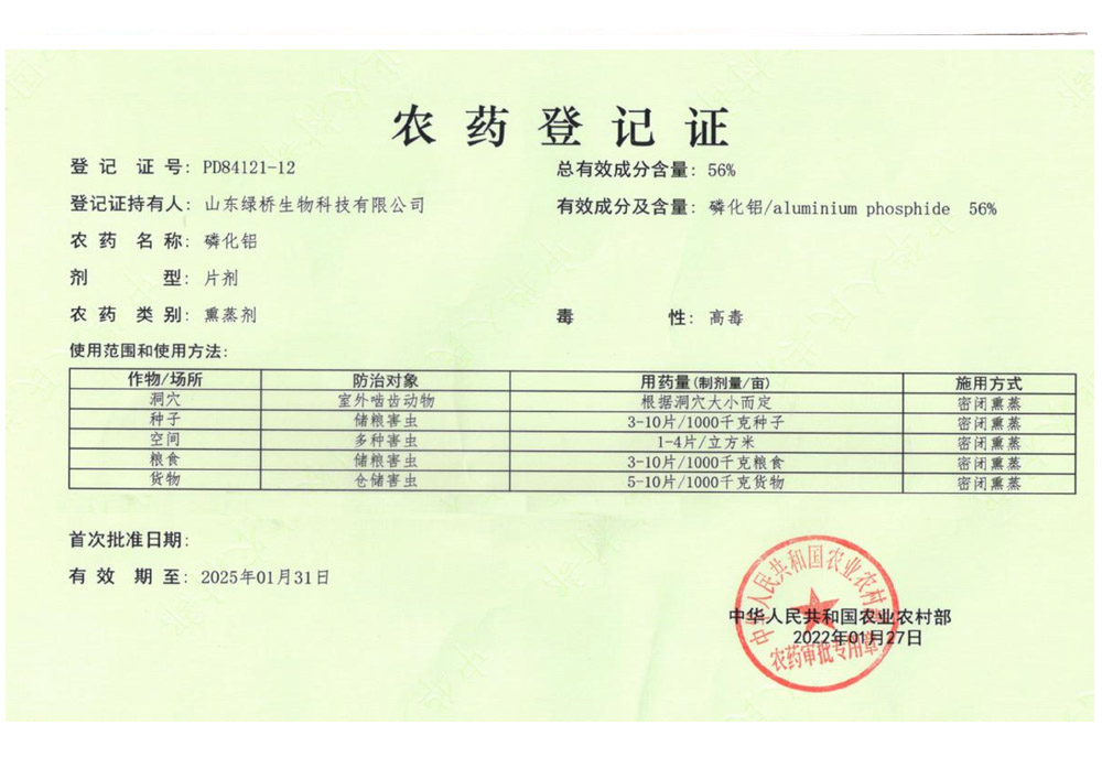 ★ 56% 片劑 農(nóng)藥登記證號:PD84121-12